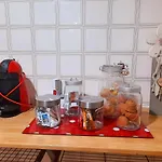 평면 스크린 TV, 작은 부엌, 식당과 전기 주전자, 오븐, 주방용품 갖춘 객실이 있습니다. 숙소에는 또한 1개의 욕실이 있습니다. 요청시 수건, 수건, 목욕 시트가 제공됩니다.